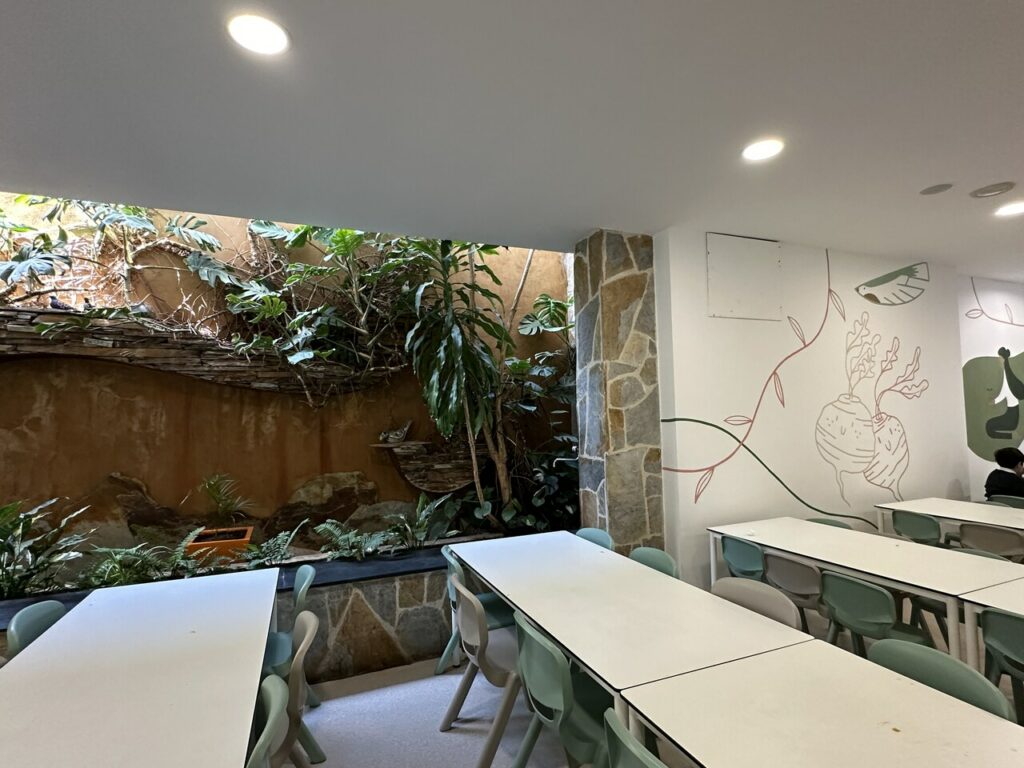 En el comedor escolar, se ha implementado un sistema para reducir los residuos alimentarios. Los estudiantes de secundaria completan un cuestionario mensual para seleccionar sus comidas, lo que ha reducido significativamente el desperdicio. Además, el colegio promueve la economía circular a través de proyectos como la creación de una aplicación para el intercambio de juguetes entre los alumnos, un proyecto futuro que fomentará la reutilización en lugar de la compra de nuevos productos.