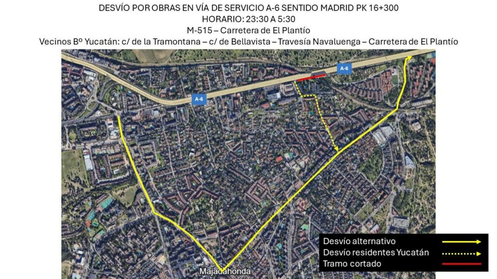 - Desvío recomendado desde la glorieta entre la M-515 y la Carretera de El Escorial por: M-515 (sentido Majadahonda) / Carretera de El Plantío.