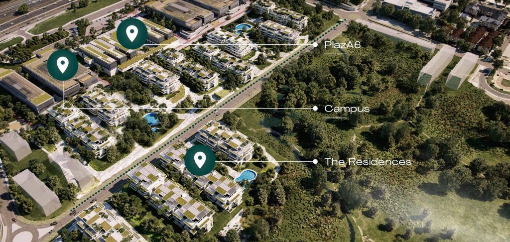 El proyecto consta de tres conceptos: The Residences, PlazaA6 y Campus.
