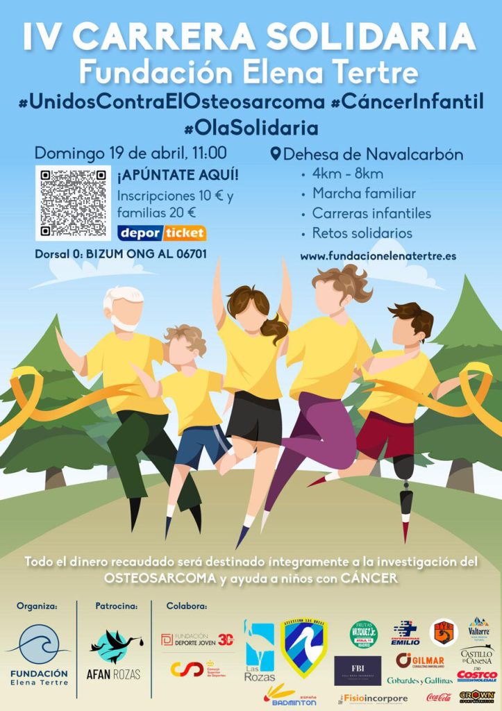 La IV Carrera Solidaria de la Fundación Elena Tertre tiene como principal objetivo dar visibilidad al osteosarcoma, un tipo de cáncer óseo que afecta principalmente a niños y adolescentes, una enfermedad poco frecuente pero de gran impacto en edades tempranas. Además, la cita busca recaudar fondos destinados a los proyectos de investigación y apoyo que impulsa la fundación.