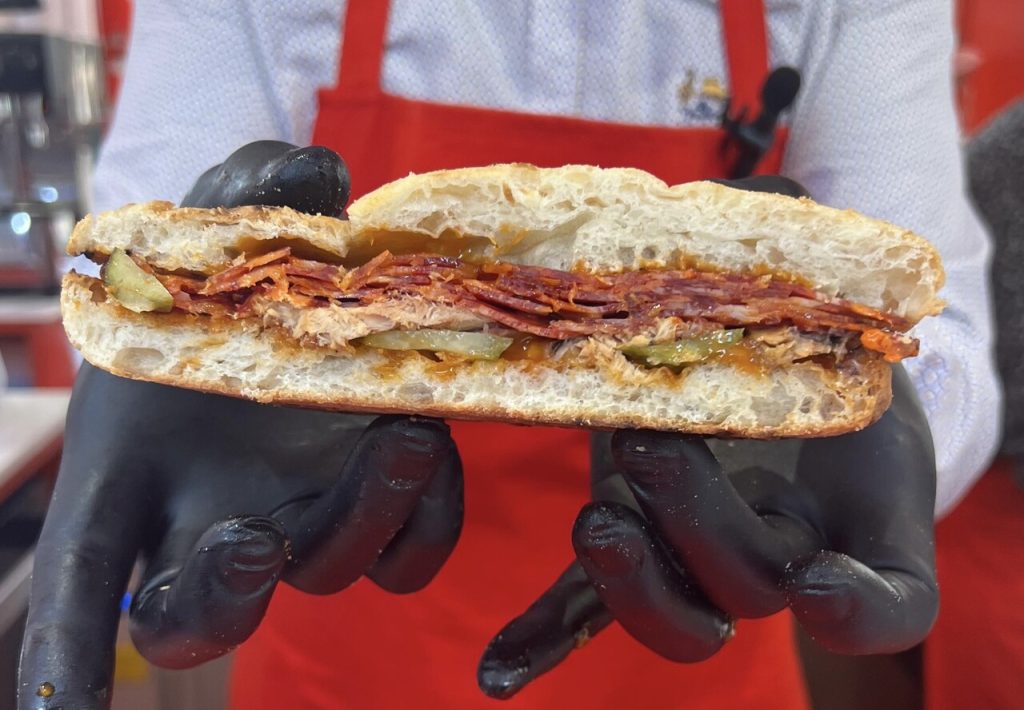 Los panes, casi todos de focaccia de aceite de oliva se sacan de un cesto y se pasan por el calor de la plancha, para después elaborar los citados bocatas. También se pueden combinar con otras opciones como los cucuruchos con taquitos de Jamón Joselito o de otros embutidos con picos, charcutería al corte de selección de chacinas, e incluso, un vaso de consomé elaborado con los huesos. Por su parte, la carta de bebidas ofrece refrescos, cerveza, café o ‘Aperol-Spritz’.