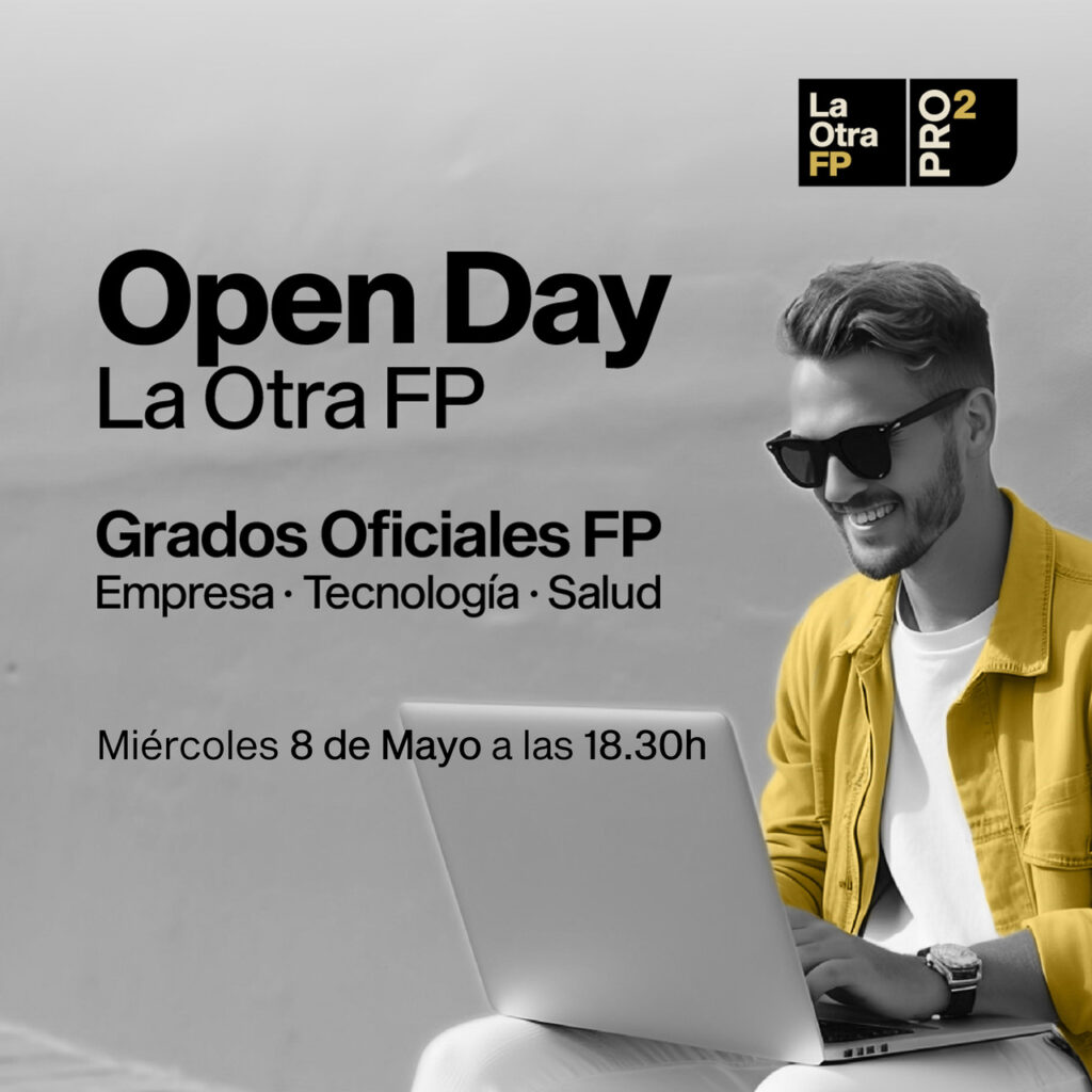 La Otra FP quiere invitarte al Open Day, un encuentro donde podrás conocer cómo liderar el proyecto de tu vida y potenciar tu talento. Destacados profesionales con vocación docente, junto con un método de aprendizaje experiencial basado en proyectos, y un acompañamiento de mentorización en el desarrollo de soft skills, te llevarán a ser un profesional con futuro. ¿Cuál es el ciclo formativo más adecuado para ti? ¿Cuáles son las FP con más salidas profesionales? ¿Cómo es el modelo pedagógico de La Otra FP?